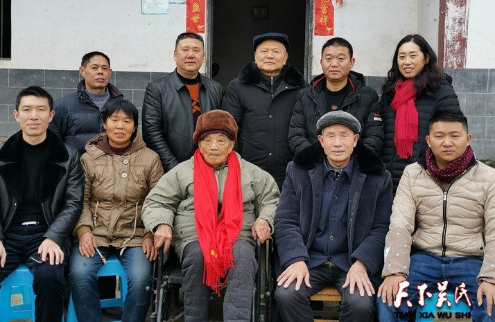 诚然,当重庆市梁平区原梁山镇鲤鱼村老支部书记吴乾发1月10日满九十五生日这天,家里却来了一批“不速之客”拜寿,他们分别是重庆吴氏文促会梁平分会常务副会长吴顺奎,重庆吴氏文促会梁平分会顾问、原梁平区交通输局局长吴子荣,常务副会长吴顺祥,副会长吴学虎,副秘书长吴小红和吴永太老宗长。