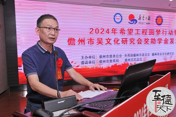 儋州市吴文化研究会荣誉会长吴多养、儋州市慈善总会副秘书长羊垂儒分别致词。对儋州市吴文化事业的深切勉励,希望望全社会人人献一分爱心,将慈善发扬光大,让更多的困难家庭子女圆上大学的梦。