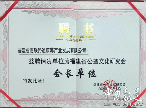 会议现场,中国退役军人就业创业促进会专家顾问、全国中老年网专家委员会特聘专家、国普网中医康养频道智库团专家顾问、上海妈祖文化研究中心高级顾问、闽中红色文化促进会创会会长、瑞金市红色文化传承协会荣誉会长吴燕秋女士被聘请为福建省公益文化研究会荣誉会长,吴燕秋会长表示将加大力度支持激励残疾人自主创业和从事志愿服务奉献社会公益事业。福建省慈联路通康养产业发展有限公司被选聘为福建省公益文化研究会会长单位。
