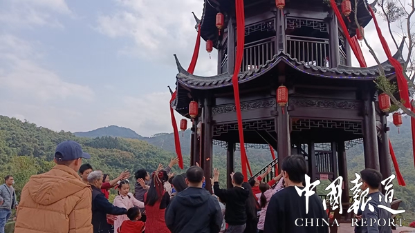 景区内凭石而生的千年牛根树也备受游客青睐。传说这棵树蕴含神奇力量,游客们纷纷围绕着它,系上景区贴心准备的红丝带,虔诚地默默许下心愿,期望新的一年平安如意。景区为每一位购买门票的游客都送上了新春祝福红围巾,红鸡蛋,红茶,红许愿树彩带,红桔子,红糖果,红饼干,八角楼红包,红绣球,既为寒冷的冬日增添了温暖,又承载着美好的寓意,让游客们在游玩过程中深切感受到浓浓的节日温情。