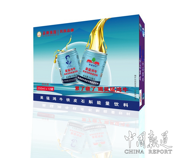 吴猛鸿牛维生素能量饮料,吴猛鸿牛铁皮石斛能量饮料(含铁皮石斛多糖与牛磺酸复合配方),吴猛鸿牛肉苁蓉黄精能量饮料(铁罐装,融合苁蓉、黄精等草本)。以铁皮石斛、苁蓉等《本草纲目》记载的“仙草”为主,强调抗氧化及细胞能量激活功效。安徽吴猛鸿牛食品饮料有限公司计划在广东梅县区建设100亿罐生产基地。产能目标:白皮书规划发展5个100亿罐饮料生产基地。