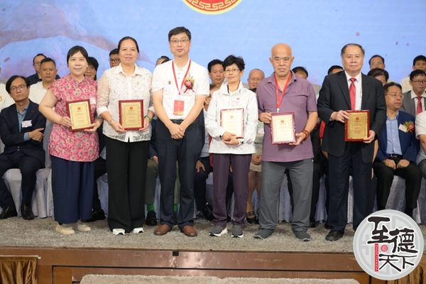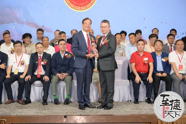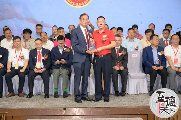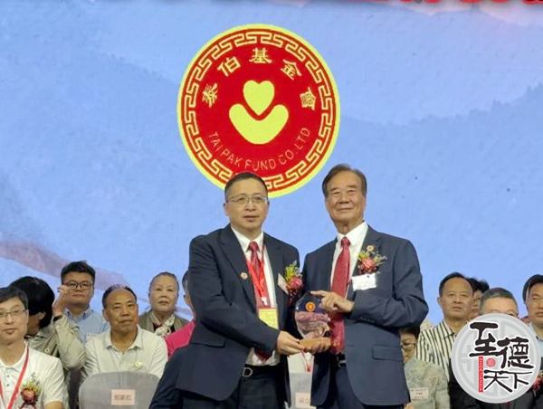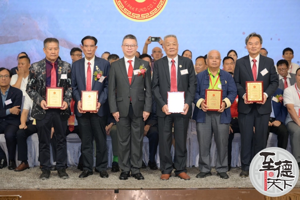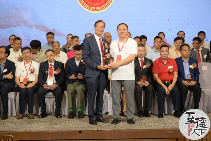 当选的第四届董事会会长、执行会长、常务会长、常务副会长、秘书长,永远荣誉会长、荣誉会长、永远名誉会长、名誉会长代表和嘉宾们一同在上主席台进行合影留念。这张照片将定格这一历史性的时刻,成为泰伯基金会发展历程中的珍贵记忆。大会还印发了在香港泰伯基金会第四届董事会就职典礼期间捐款捐物礼品名单发放到每一张就餐台上,对捐款捐物的组织和个人表示衷心的感谢。为感谢各位领导、嘉宾、热心人士对香港泰伯基金会一直以来工作的支持,香港泰伯基金会会长吴立辉博士上台,为这些嘉宾分别颁发了“奉献奖”。