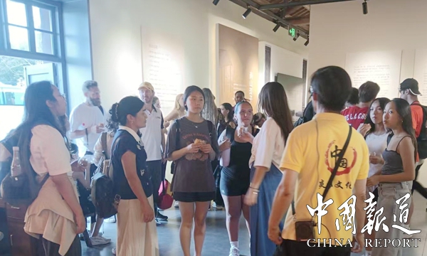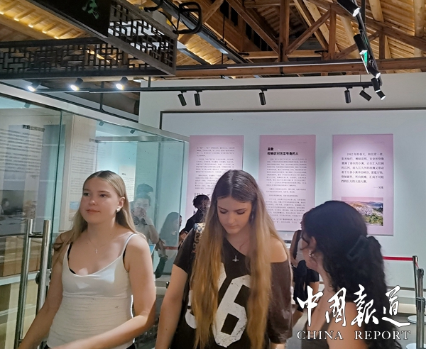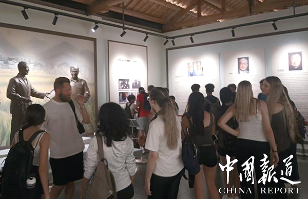 在商山人文馆,作为长期受聘该市康辉国际旅行社欧美部,致力于国际学校研学旅行课程的文化顾问吴琳老师,怀着一如往常的和蔼、谦逊与质朴,热诚地欢迎和接待了这批千里疾行而来,年龄不大却分属二十多个国籍,无论语言、性格还是学习方式都迥异的各国学子,并在领队老师、随队导游和翻译的配合下,依托商山人文馆内展板配展柜的传统文图与文物呈现;古牌坊、书院模型及人物塑像的场景还原与烘托;特殊人物、事件的单列与诠释等形式和资源优势,详尽地介绍了千年古镇商山于古代科举与教育上的突显、清官良吏与拾金不昧道德典范的层出不穷、富商巨贾的富不废礼与豪侠情怀,尤其该镇最著的吴氏家族,历代都有仿效“商山四皓”(秦汉之际因不满秦始皇焚书坑儒而隐居西安帝都旁商山的秦皇身边七十二位博士中的四位高士)而示范族人的典型人文特质与义勇担当。
