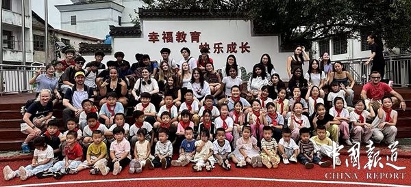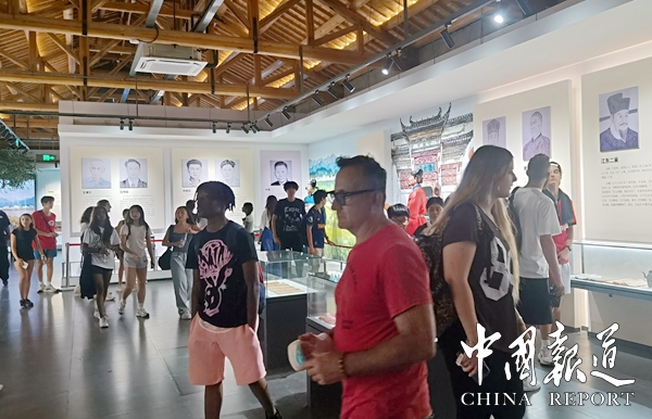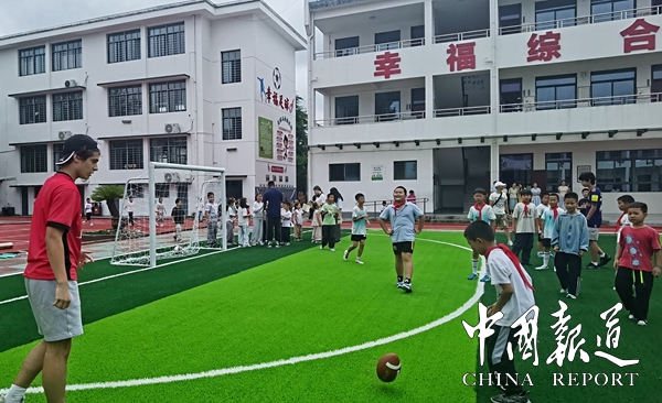 近现代又涌现出如孙起孟、吴象、吴韫山、吴志峰等为共和国的诞生、发展与改革事业立下不朽功勋的乡贤。让师生们受到了一次心灵震撼的中国优秀传统文化的教育和精神洗炼。为了能更生动地诠释商山人文与教育上的突显,吴老师还特地为这些国际友人预订了一场与属地商山中心小学的校际交流活动。交流互动中,无论是中外学生们齐聚一堂,围绕着中国传统佳节——中秋节的知识点与单词记颂开展竞答,还是操场上足球、排球等各类体育竞赛,商山小学的小朋友们都毫不逊色,突显了该千年古镇小学生的综合素养。