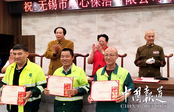 无锡市顺心保洁有限公司董事长吴焕其,总经理廉昱晟、陈鹤春先后致辞。58名优秀员工获表彰,先进标兵有,刘茜、袁翠兰、胡宏伟, 陆培清、周炳忠、朱晓光、王军、陈献、吕斌获评先进项目经理,先进工作者有,李文、李珠琴、吕雪琴、梁春芳、施菊平、胡军、葛华生、钱志高、虞惠珍、张玉永、乔如香、胡建宏、朱生元、沈缪萍、王玉英等代表。