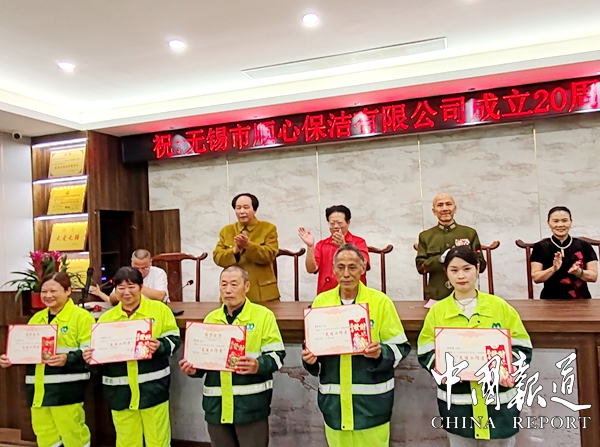 吴焕其致词说,今天,我们怀着无比激动的心情,共同庆祝无锡市顺心保洁有限公司成立20周年。站在这个特殊的历史节点,我谨代表公司向每一位奋斗者、支持者致以最诚挚的感谢!公司的成长离不开每一位员工的坚守。无论是凌晨清扫街道的环卫工人,还是深夜检修设备的工程师,是你们用双手守护城市的洁净,用创新推动行业的进步。 同时,也要感谢合作伙伴的信任与支持,是你们让我们在环保事业中结伴同行,共担使命。