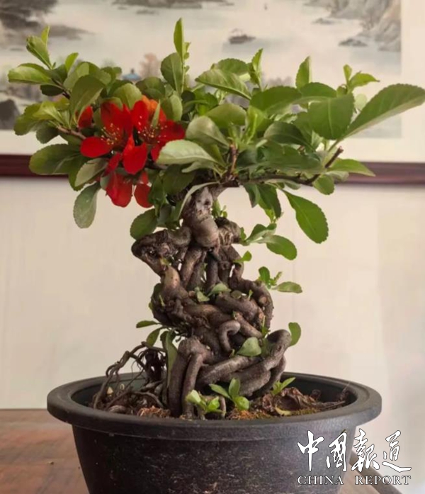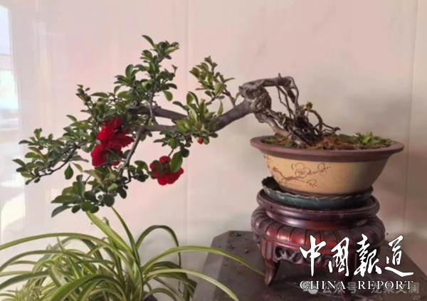 原来,他一直爱好书法、盆景,长期从事盆景栽培与书法创作。其作品始终融合着生活体验与艺术追求。他的盆景作品注重自然造景,常以山水云游的体验融入创作,特别讲究形态与意境的融合,兼具观赏性与艺术性。