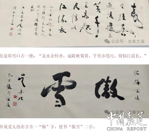 先是即兴口占一绝:“袁水金桂香,延陵秋菊黄。千里亦咫尺,情似江流长。”