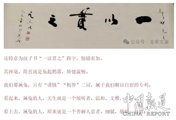 还特意为孩子书“一以贯之”四字,勉励有加。