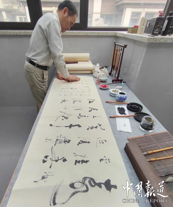 这次,在我的书法案台,先生书兴打发,当场为我泼墨挥毫。