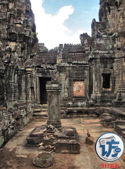 在整个大吴哥城的范围内,还有巴方寺(Baphoun)、绯明纳卡寺(Phimeanakas)、利泊王坛(LeperKing)、大象坛(TerraceofElephants)等著名建筑。在都城中央,建有宫殿、图书馆、浴场、回廊等。在城的中央,还有长约300米的著名建筑——象台,据说是当时国王检阅部队的阅兵台。一个大台,两个小台。大台左右两侧置有石象,骑在象身上的是王朝的大臣们。这和中国皇陵前设置的石相生是一致的,只不过中国设置的种类更多。阅兵台前方的广场上筑有12座红色小塔,什么功能弄不清楚,柬埔寨人也回答不上来,但是关于吴哥城如何被废弃他们却有几种说法。传说,公元1171年,吴哥遭到邻国洗劫后,国王耶跋摩七世对印度教主神的保护能力失去信心,于是吉蔑人全体放弃了印度教,转而皈依佛教,采纳放弃暴力、信奉和平的生活方式。这种宗教信仰的改变导致的结果是,泰族军队在公元1431年,未遇任何抵抗就占领并洗劫了吴哥。