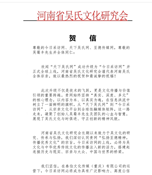 关于我们】今日采访.com、天下吴氏网、至德传媒网隶属于泰伯文化传媒(重庆)有限公司独家运营的三网合一公益性网站,集官网、APP、自媒体、抖音、视频号、公众号同步传播的综合性融媒体平台。