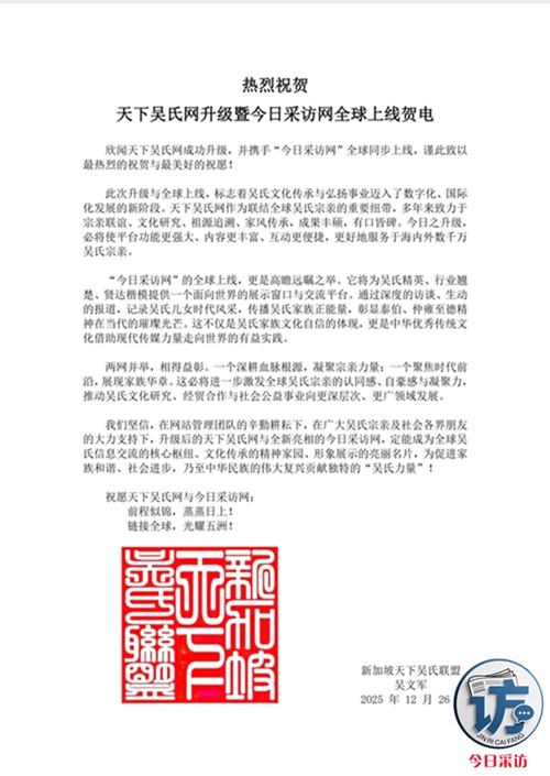 【关于我们】今日采访.com、天下吴氏网、至德传媒网隶属于泰伯文化传媒(重庆)有限公司独家运营的三网合一公益性网站,集官网、APP、自媒体、抖音、视频号、公众号同步传播的综合性融媒体平台。