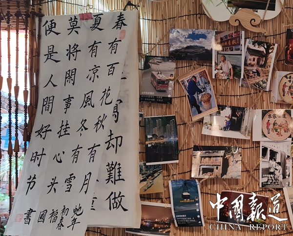 “钢城叙旧”就象是都市里的“村庄”,又象是城市的微缩“大观园”,在这里,有书香飘荡的浓郁,穿越时空儿时的各类记忆物件,如伟人象章,伟人铜像,旧式闹钟,怀旧老照片,老式算盘,茶道,粮票,分分角角纸布,旧式钢琴,小提琴,吉它,古玩字画、毛泽东选集、旧版红楼梦、辞源专集等各类报刊书籍。室外墙壁旧轮胎装饰,洞穴有涓滴不漏地下细水,鸟语花香般的徵型花园生机勃勃,嫩绿花草香气宜人。