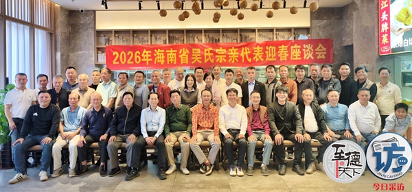 今日采访网讯(海南工作站吴乾山报道)2月10日,农历新春佳节临近,年味渐浓。海南省吴氏宗亲代表迎春座谈会在海口市隆重举行。来自海口市、儋州市、琼海市、万宁市,屯昌、澄迈等全省各市县的吴氏宗亲会代表近50人欢聚一堂,畅叙血脉亲情,共贺马年新春,展望未来发展。现场气氛温馨热烈,洋溢着浓厚的家国情怀与节日喜悦。