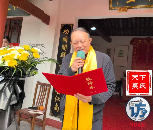 参会部分代表先后上台致词,四川省吴氏宗亲总会常务会长、新都吴氏文越公宗亲会会长吴光勇致欢迎词,四川省吴氏宗亲总会吴天智会长致辞,今日采访网、天下吴氏网创始人吴蜀丰在致词后受无锡祖地吴乐一教授特别委托向主办方赠送吴氏开姓始祖泰伯公、传代始祖仲雍公及延陵王季札公(泰伯19世裔孙)原始画像。