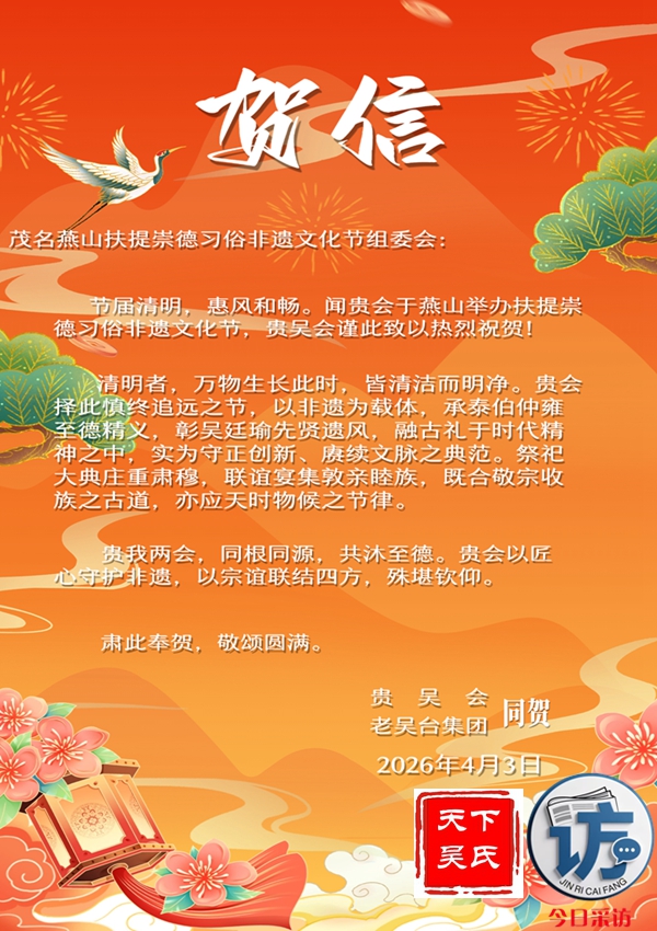 贵吴会老吴台集团茂名燕山扶提崇德习俗非遗文化节组委会贺信