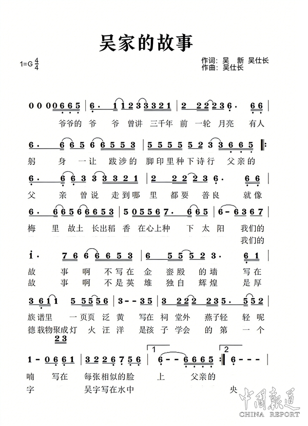 《吴家的故事》由吴氏祖地宗亲总会会长吴新与国家一级作曲吴仕长共同作词,吴仕长作曲并演唱。歌曲以“家族口述史”的独特视角,通过“爷爷的爷爷”代代相传的温暖叙事,将泰伯“三让天下”的至德精神转化为“谦让”“善良”“厚德”等可感可知的家风传承。作品既追求文学品质,又力求通俗易懂,童声开篇的设计极具感染力,旨在凝聚全球吴氏族人的情感认同,展现三千多年吴文化的深厚底蕴与时代生命力。