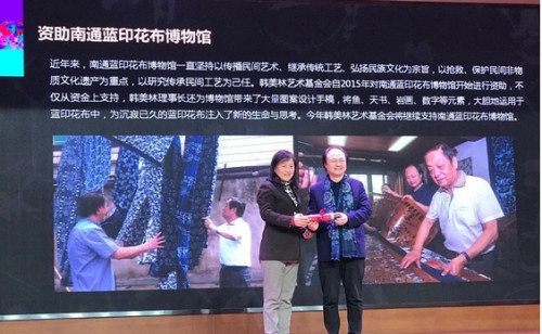 南通蓝印花布博物馆衷心感谢韩美林老师和周建萍馆长以及社会各界长期以来的关心和支持,我们一定全力将南通蓝印花布这一国家级非物质文化遗产传承好,保护好,发展好,努力将南通蓝印花布印染技艺申报成为人类(世界)非物质文化遗产。