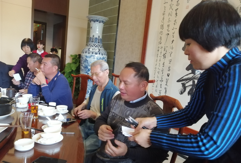 1月19日上午10点不到,就有一些深吴会的宗长来到深吴会所,到接近中午十二点钟的时候,己经有19位宗亲在深吴会所,大家计划在午餐之后开始举行换届选举会议。于是大家来到海韵大厦顶层空中花园的餐厅就餐。