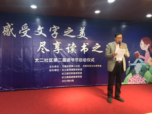 出席本次读书节启动仪式有无锡市吴文化研究会会长吴仁山教授、江溪街道宣传委员薛智娟、无锡市吴文化研究会顾问委员会主任陈振康副教授、太湖花园第二社区党总支书记兼无锡市吴文化研究会秘书长桑梅、中铁十一局、村田电子等单位领导、社区党员、社区居民等100多位。
