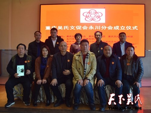 由重庆吴氏文化发展促进会党支部书记兼监事长吴晓非代理任重庆吴氏文促会永川分会会长,吴志国任重庆吴氏文促会永川分会执行会长,吴学海、吴修刚、吴长清、吴清贤任名誉会长,吴志奇、吴清伦、吴修炼、吴平国、吴德鹏、吴君凤任分副会长,吴清伦任秘书长;吴平志、吴至善、吴小红、吴至春、吴明凤任副秘书长。