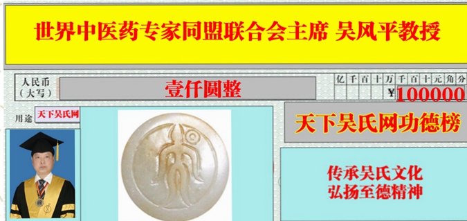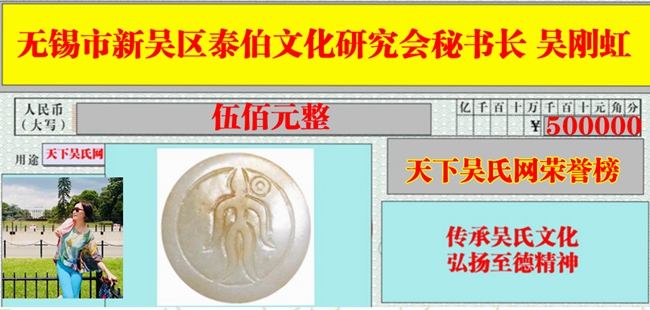 近日,收到以下吴氏宗长宗贤为天下吴氏网捐款。在此深表感恩,天下吴氏网,有你更精彩!他们是吴映辉、吴燕秋、吴小容、吴靖年、吴宜高、吴维帮、吴刚虹、吴昌乐、吴风平、吴恒、吴学强、吴仁山等宗亲。