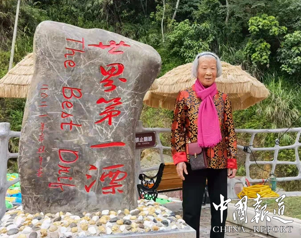 中国报道讯(通讯员 覃源 岑福山)7月20日,世界长寿之乡金三角广西东兰香河漂流景区起漂点, 鲜花盛开,姹紫嫣红,沁人心脾, 晴朗的天空色彩缤纷,气息芬芳醉人。酷暑难耐的夏天,这里却清爽凉快,今天景区迎来了福建泉州市93岁的尊贵游客、年龄最大的第一湾公司股东吴妈妈,她迈着健步,走进漂流船,看着碧绿的山溪水,激动地对身边工作人员说:我想漂,我想漂。工作人员再三劝阻,只给她在平缓地方漂了一段。