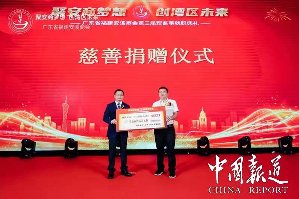 庆典上,商会第三届会长刘国瑛代表商会向安溪县慈善总会捐赠慈善公益基金人民币156万元,助力家乡安溪的乡村振兴、教育、慈善等公益事业的发展。