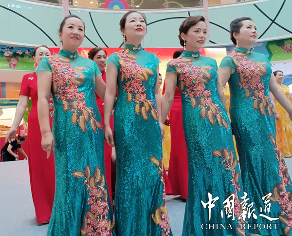 中国报道讯(吴蜀丰 通讯员 曹继选)6月10日,健康中国公益万里行中老年才艺大赛合川赛区海选赛在重庆合川区宝龙广场举行,重庆市合川区旗袍文化协会推送的《再唱山歌给党听》旗袍秀迎得台下阵阵掌声。成为合川区25支中老年文艺团队中最具活力的表演团队之一。“我把歌儿献给你,五十六个民族同唱一首歌,我们一起再唱山歌,阿拉耶山歌给党听哟,再唱山歌给党听,幸福的歌儿献给你,民族兄弟姐妹心连着心,我们携手和谐家园,……优美的舞蹈﹑动听的歌词令人留流连忘返。