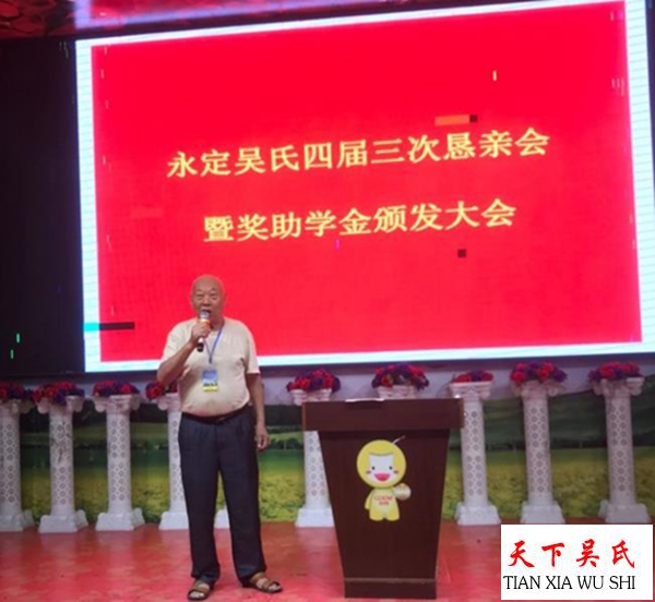 近几年来,新的一届联谊会主要组成人员,为宗亲做了很多实事好事,付出了很大的努力,取得了显著的成绩。对此,我十分欣慰,表示真诚的感谢今天,联谊会还要表彰我们吴氏学子在今年的高考中又取得了很好的成绩,面对这些学子的成长,我作为成立奖助学金基金会的倡议成员之一,特别高兴,甚至自豪骄傲。应该知道,我们的联谊会拥有如此长盛不衰的凝聚力,那是县区之内仅此一家!而且每年都延续有三四十个优秀学子受奖也是县区之内独占鳌头的事!这就是“渤海世泽长”,就是优秀传统文化和一笔财富。据此,各房宗亲必须珍惜,必须支持联谊会的工作,努力使这一文化得以传承与光大弘扬。人文财宝的取得,无疑是崇文重教的结果。兆宏,我一生从事文化教育工作,趁此机会,请允许我说几点有关培育后辈学子和弘扬吴氏文化的看法,供大家参考。