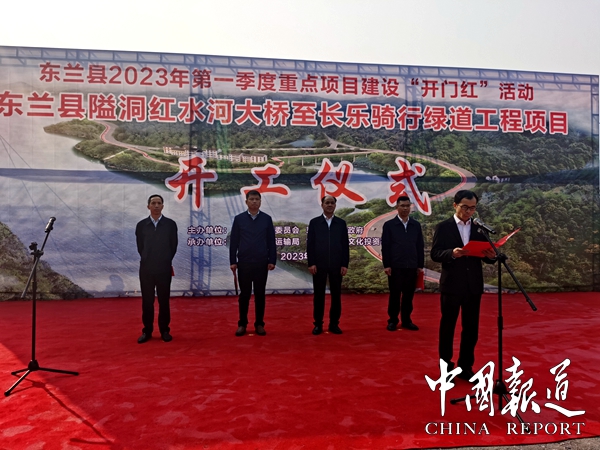 中国报道讯(通讯员岑福山 覃源 麦国新)3月14日,广西东兰县又添新景观,广西东兰县隘洞红水河大桥至长乐坡豪湖国家湿地公园骑行绿道项目在隘洞镇举行开工仪式。东兰县县政协主席龙超云宣布项目开工,县人大常委会副主任韦坚在仪式上致辞。