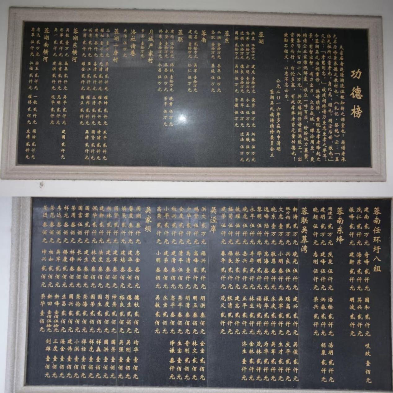 走进吴氏宗祠,名家匾额、重修蓉湖吴氏宗祠的奠基石、精致灵巧的石亭、捐修宗祠的功德榜、吴氏宗祠介绍、藏书阁、吴氏族谱、拜殿、吴氏灵堂牌位、燕寝、宗祠建筑风格中的雕梁画栋、合理的庭院布局等,一件件的历史文物、一桩桩的历史情节,象一座伟大的宝库,蓄满了物质财富和精神财富,无不让我们感受到蓉湖吴氏宗祠的历史文化之厚重。同时,宗祠中还别开记载了日寇在蓉湖犯下的滔天罪行:一九三七年八一三事变后,日寇占领江南,疯狂的烧杀抢掠。一九四一年农历十二月初一,日寇在芙蓉圩合围清乡,以搜查中国士兵和枪支为由,逮捕吴家港村村民,严刑逼供、焚烧攘杀,枪杀吴氏族人十一人,酷刑致重伤者数十人,致死幼童一人。吴焕其的爷爷、爸爸也被日寇悬绳祠堂内,加以焚如之刑,极尽残忍。历史又一次告诚我们,身为炎黄子孙,要自强不息,壮我河山。