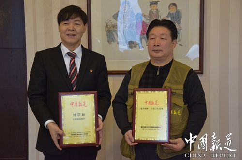重庆市爱心社区志愿服务指导中心正式与中国报道《魅力城乡》建立战略合作并举行授牌仪式,中国报道《魅力城乡》特聘重庆市爱心社区志愿服务指导中心主任刘崇和为首席媒体顾问,重庆市爱心社区志愿者服务指导中心同时又将中国报道《魅力城乡》作为首席合作媒体并相互授牌合影。